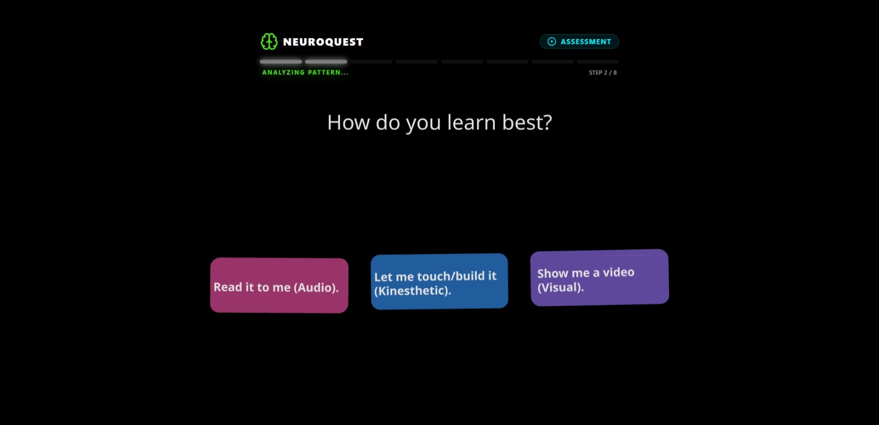 NeuroQuest represents just the beginning of this journey. I'm excited to refine our MVP and continue exploring the intersection of AI and inclusive education—because everyone deserves the chance to learn in a way that works for them.