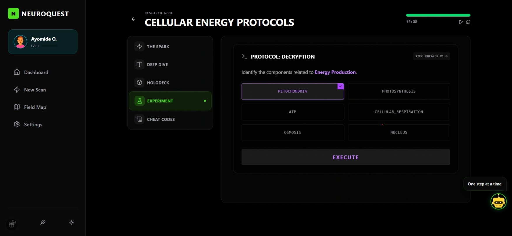 I didn't want to build just another app—I wanted to create a bridge. With this vision, my team and I conceived NeuroQuest, a platform that flips the educational paradigm: instead of forcing students to adapt to the curriculum, we would make the curriculum adapt to them.